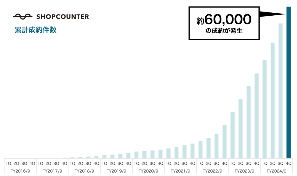 当社は、「意志ある人と、自由をつくる。」をビジョンに、また「すべての商業不動産をデジタル化し、商いの新たなインフラをつくる。」を実現すべきミッションとして掲げ、ポップアップストアの出店支援プラットフォーム「SHOPCOUNTER」のほか、商業施設のオンラインリーシング支援SaaS「SHOPCOUNTER Enterprise」を提供してきました。「SHOPCOUNTER」はサービス開始から現在まで、累計取り扱いスペース数約25,000、登録テナント数は約70,000となり、特にコロナ禍以降、益々注目を集めるオフライン消費のニーズを受けて、非連続な成長をしています。