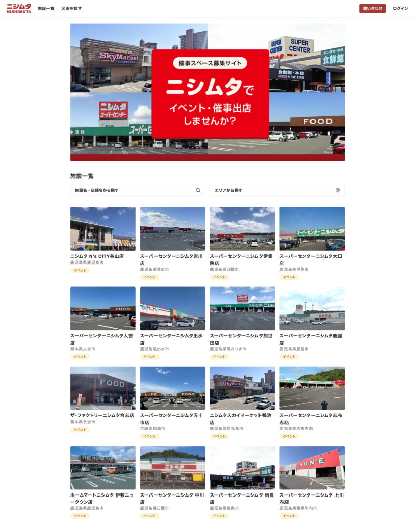 ▼「ニシムタ催事スペース募集サイト」の画面イメージ